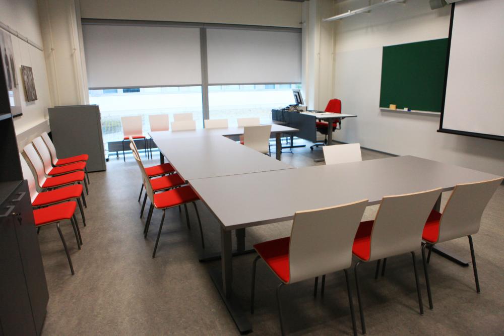 Our meeting room accommodates up to approximately 25 persons. The room has a projector and Internet connection, and it is also possible to arrange a catering within the room.